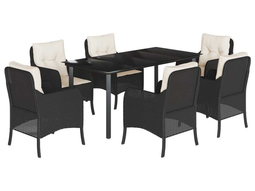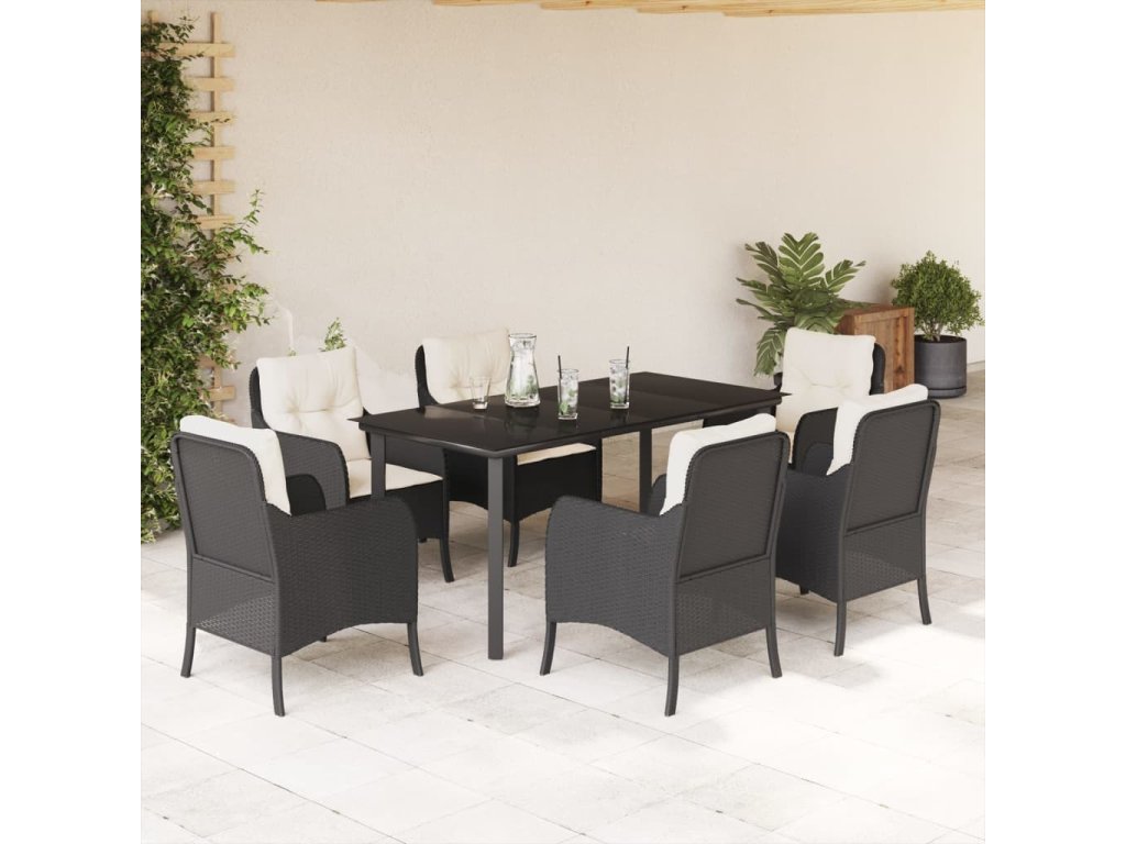 7dílný zahradní jídelní set s poduškami černý polyratan [3211917]
