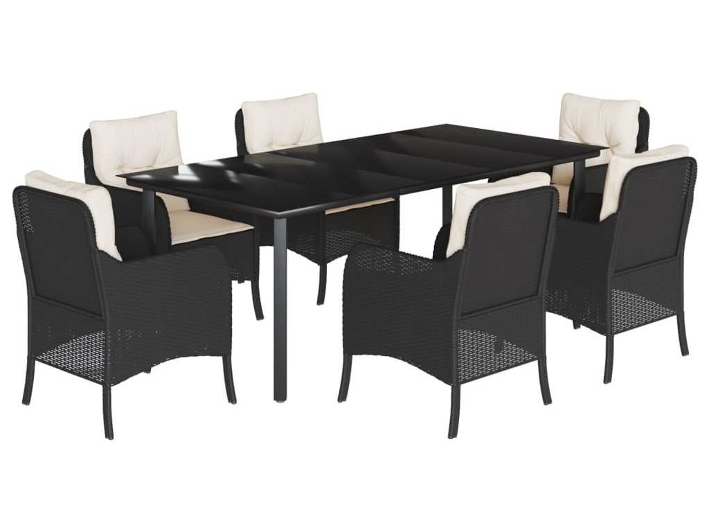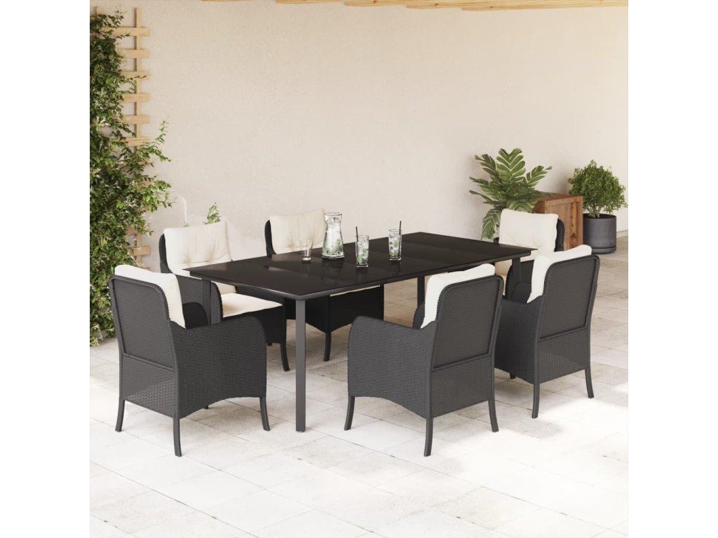 7dílný zahradní jídelní set s poduškami černý polyratan [3211918]