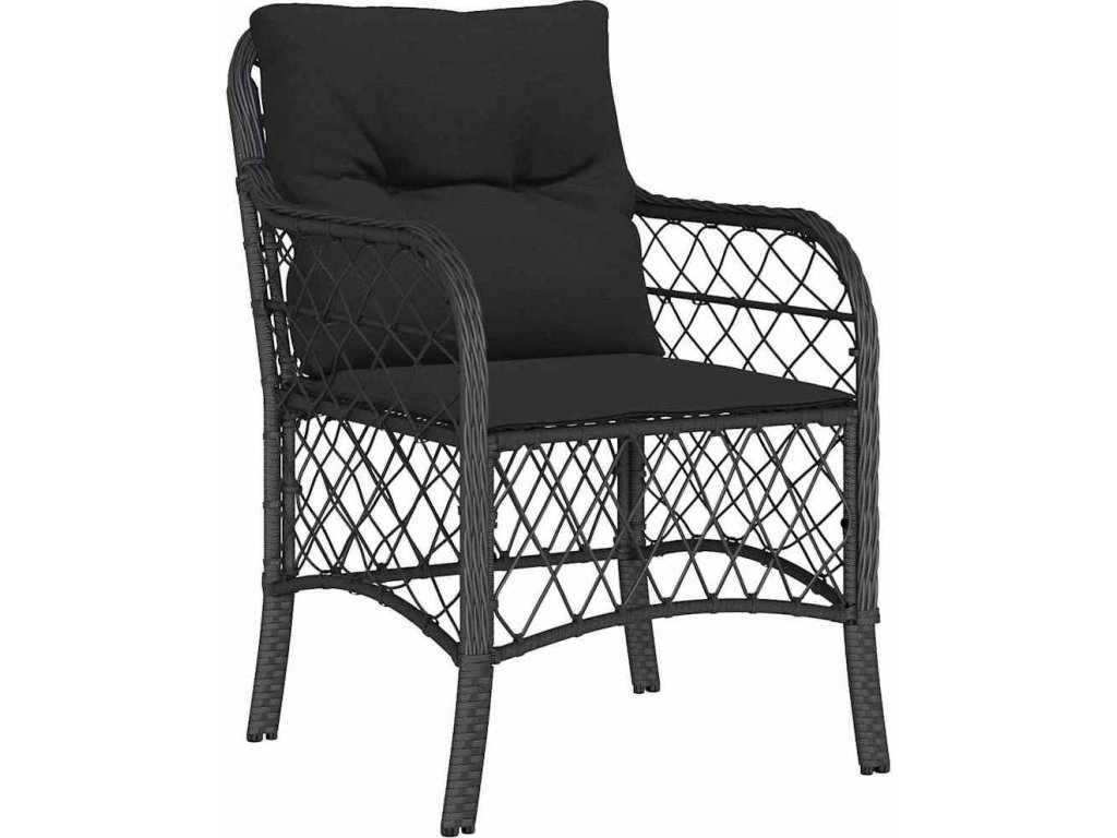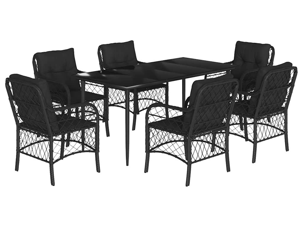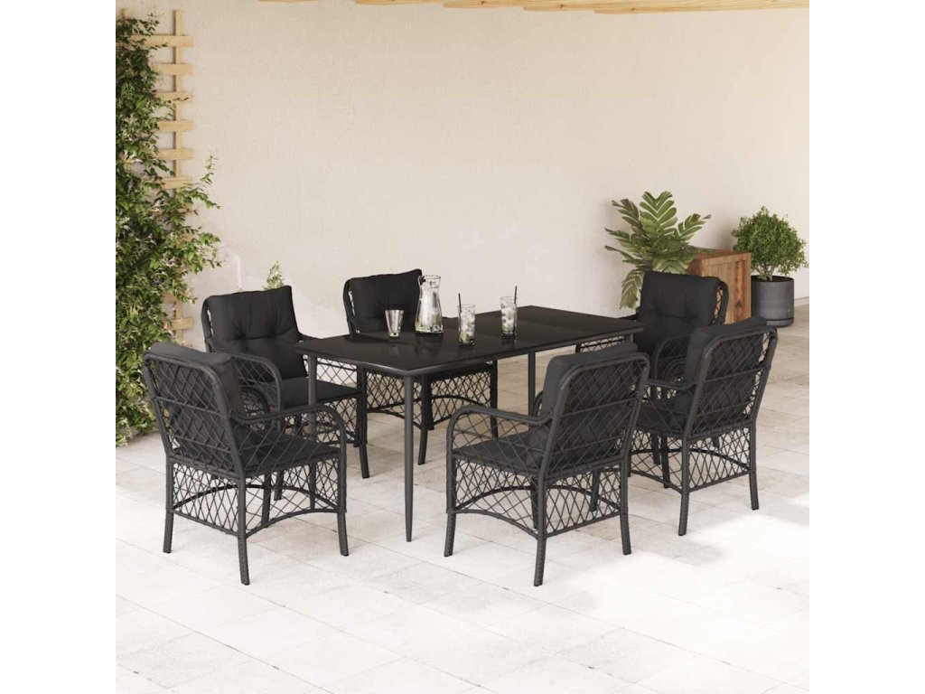 7dílný zahradní jídelní set s poduškami černý polyratan [3212100]
