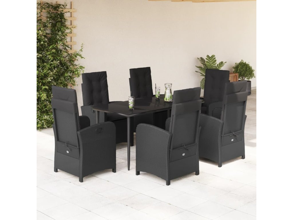7dílný zahradní jídelní set s poduškami černý polyratan [3212316]