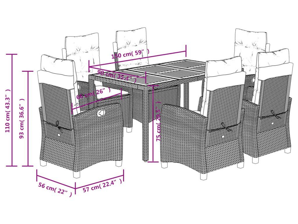 - Materiál: PE ratan, práškově lakovaná ocel, masivní akáciové dřevo s olejovou povrchovou úpravou