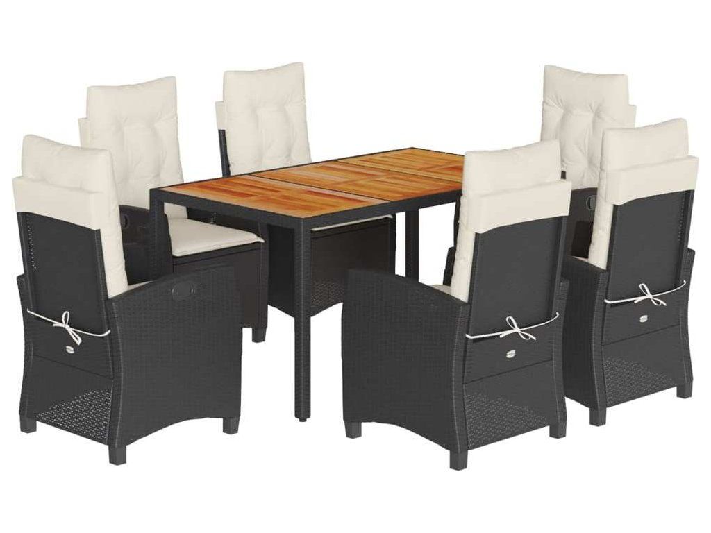 7dílný zahradní jídelní set s poduškami černý polyratan [3212658]