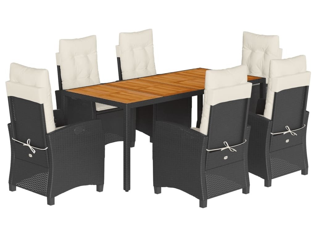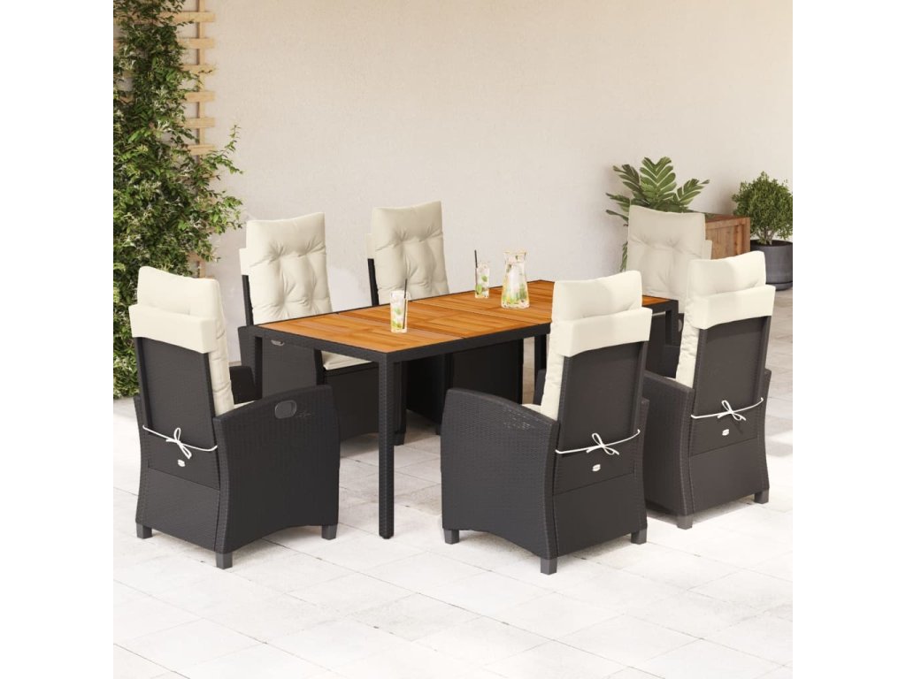 7dílný zahradní jídelní set s poduškami černý polyratan [3212659]