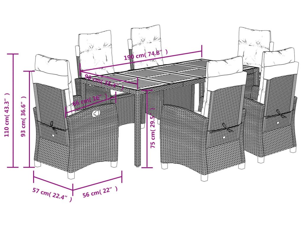 - Materiál: PE ratan, práškově lakovaná ocel, masivní akáciové dřevo s olejovou povrchovou úpravou