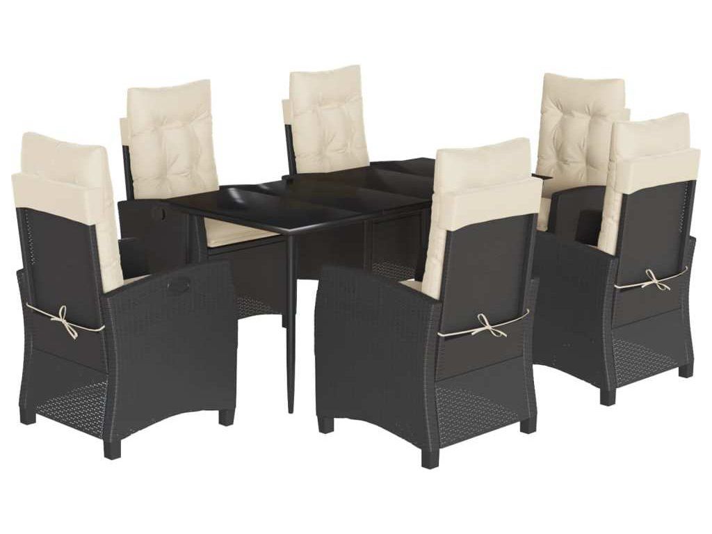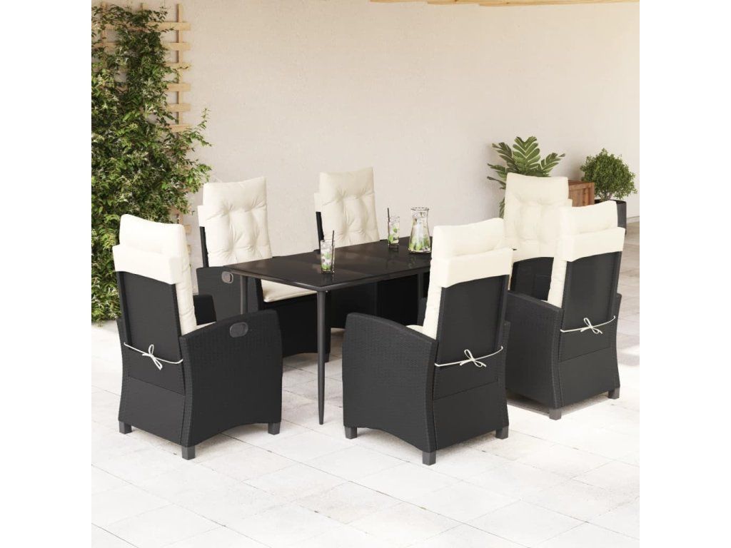 7dílný zahradní jídelní set s poduškami černý polyratan [3212728]