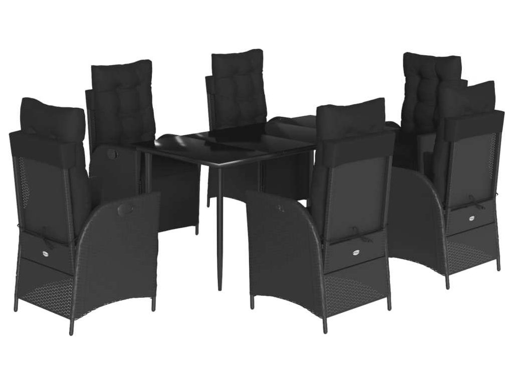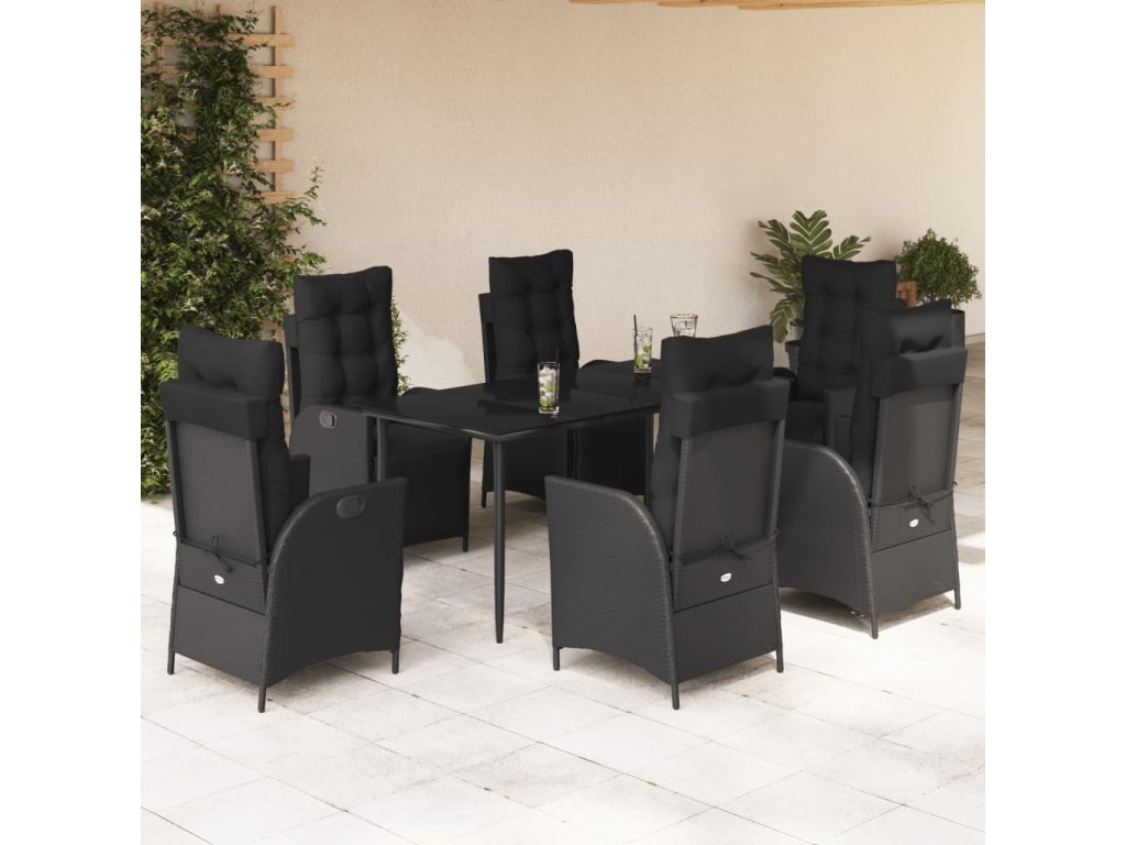 7dílný zahradní jídelní set s poduškami černý polyratan [3213396]