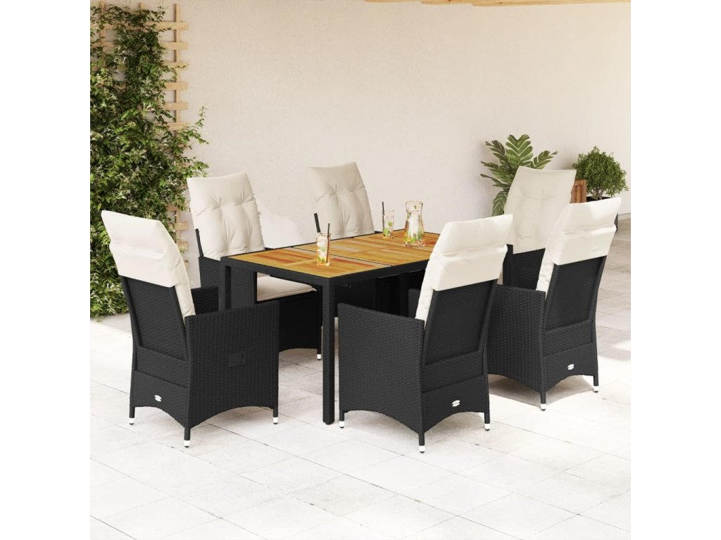 7dílný zahradní jídelní set s poduškami černý polyratan [3276683]