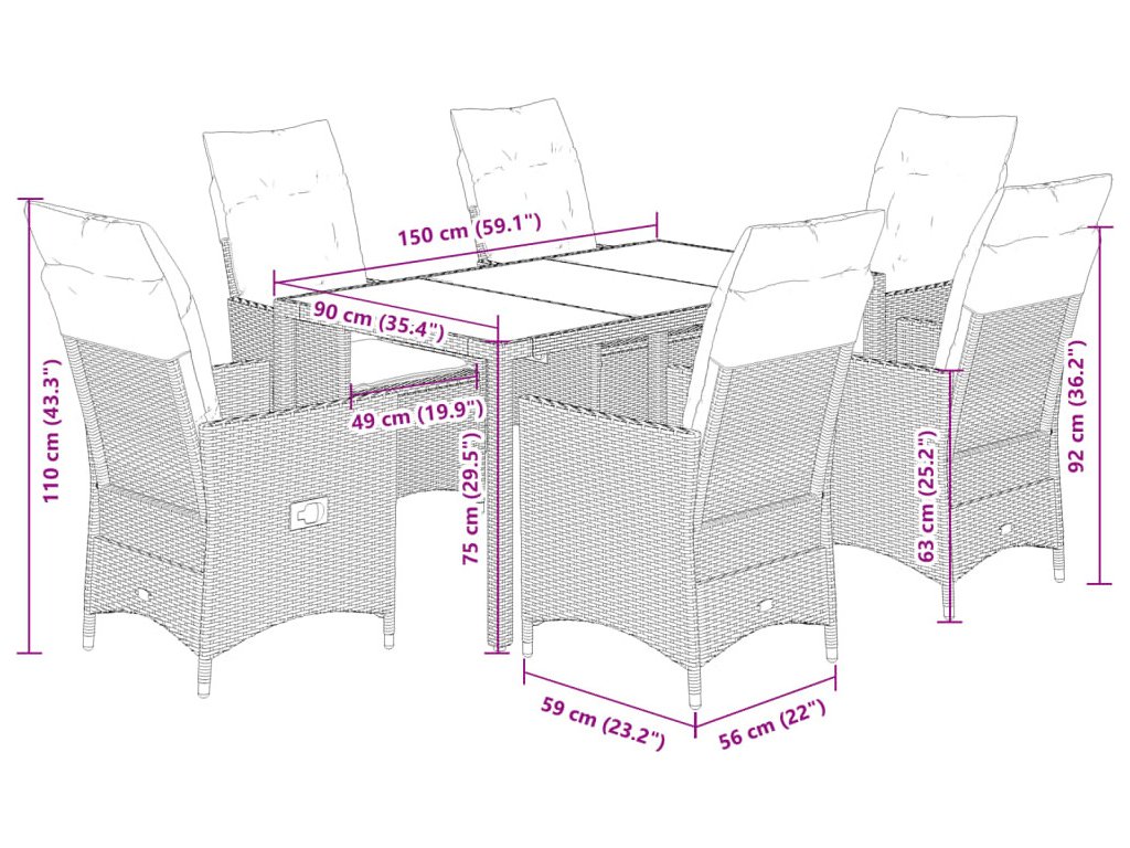 - Pohodlné sezení: Tento venkovní nábytkový set se silně polstrovanými poduškami a polštáři nabízí pohodlné sezení.
