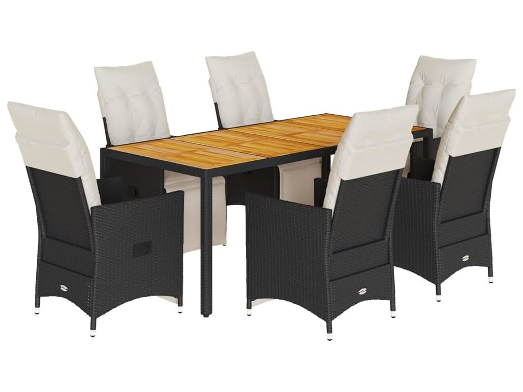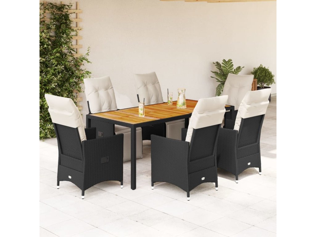 7dílný zahradní jídelní set s poduškami černý polyratan [3276859]
