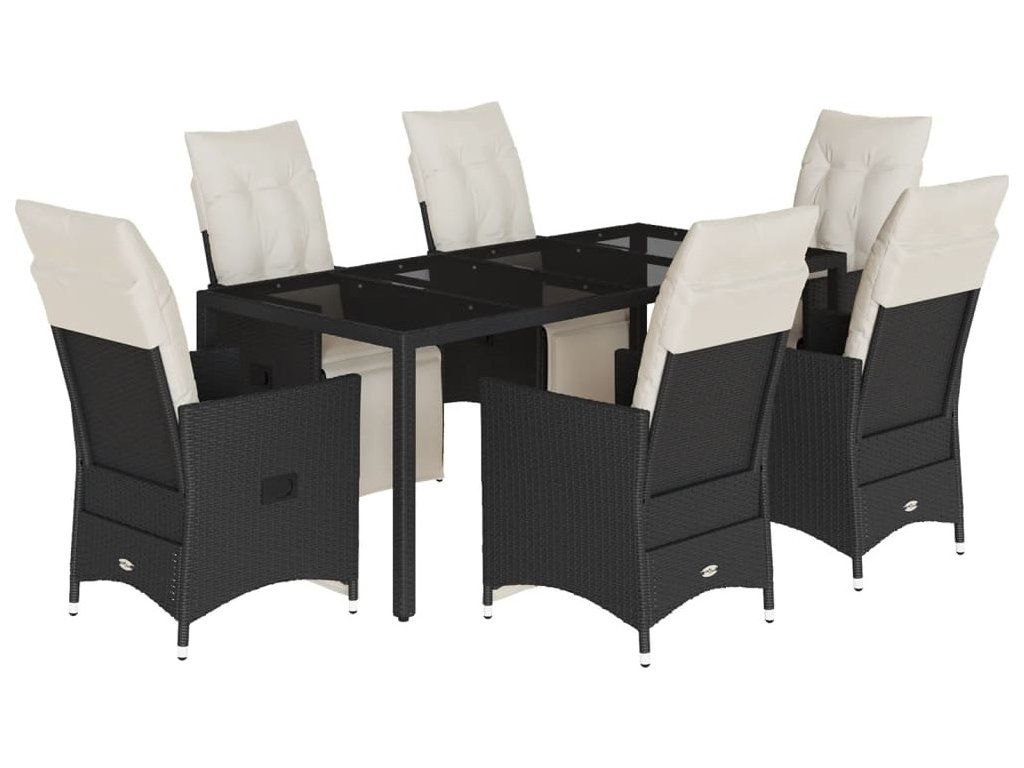 7dílný zahradní jídelní set s poduškami černý polyratan [3276867]