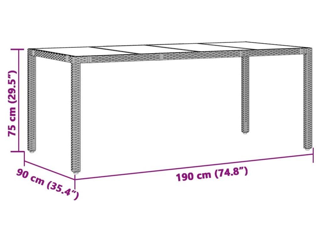 - Skleněná deska stolu: Deska venkovního stolu je zhotovena ze silného a odolného tvrzeného skla, takže ji snadno očistíte vlhkým hadříkem a zároveň do vašeho venkovního prostoru vnese nádech elegance.