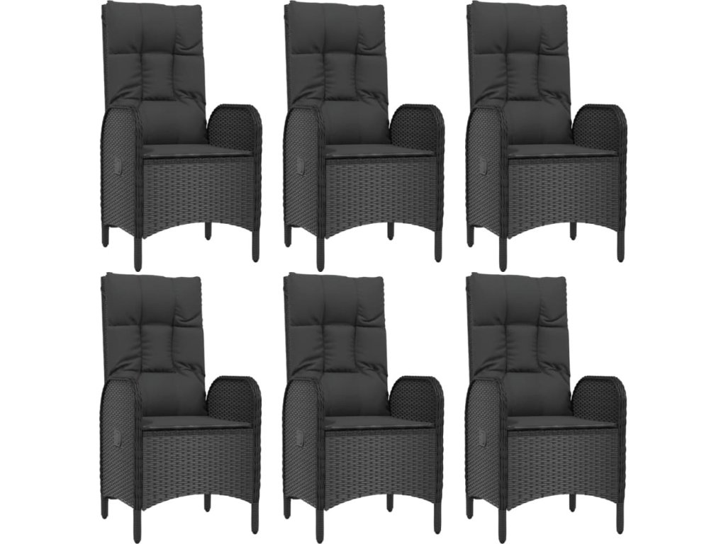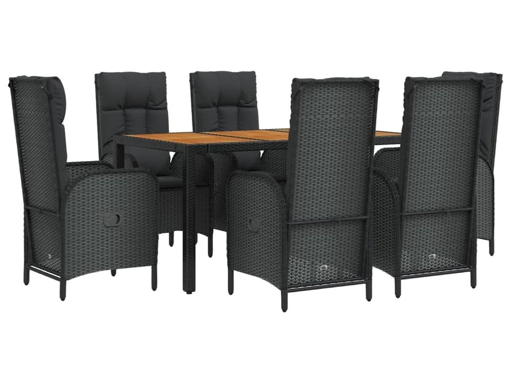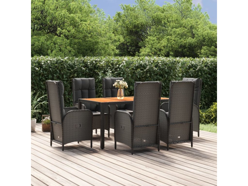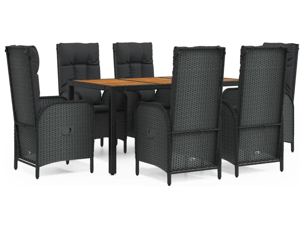 7dílný zahradní jídelní set s poduškami černý polyratan [3185071]