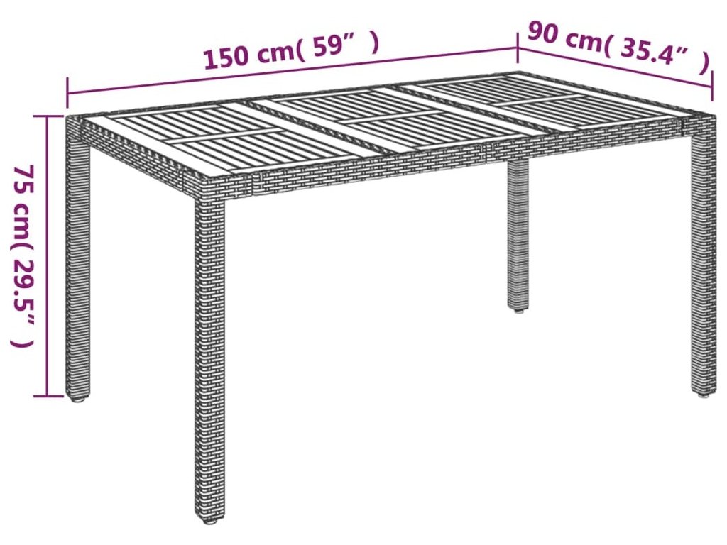 - Materiál: PE ratan, práškově lakovaná ocel, masivní akáciové dřevo s olejovou povrchovou úpravou