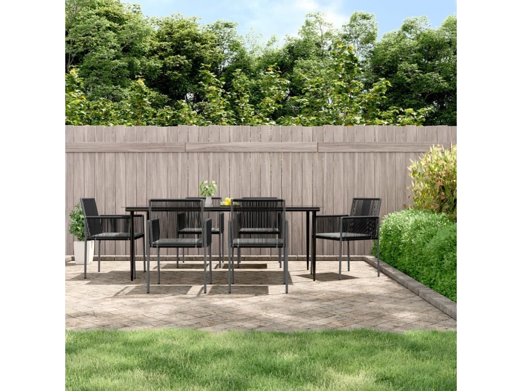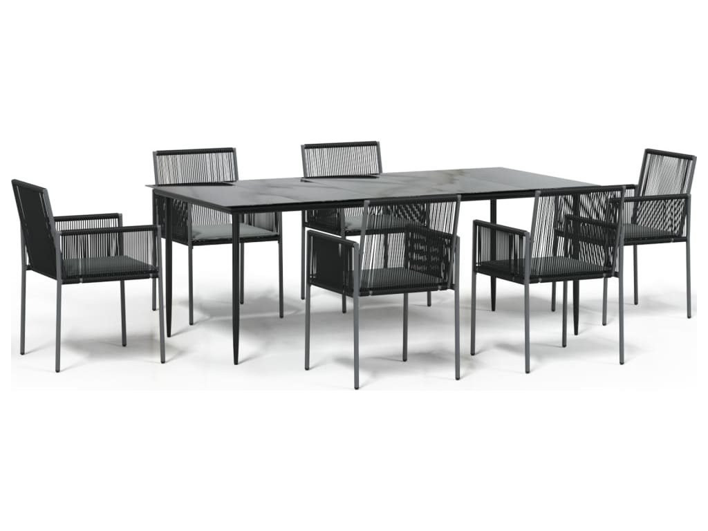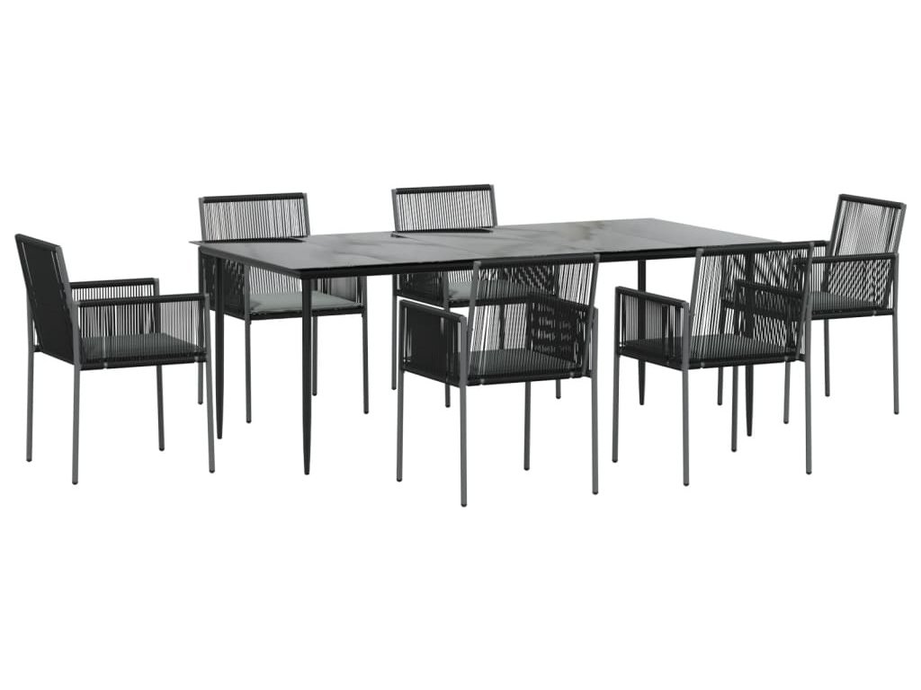 7dílný zahradní jídelní set s poduškami černý polyratan a ocel [3187071]
