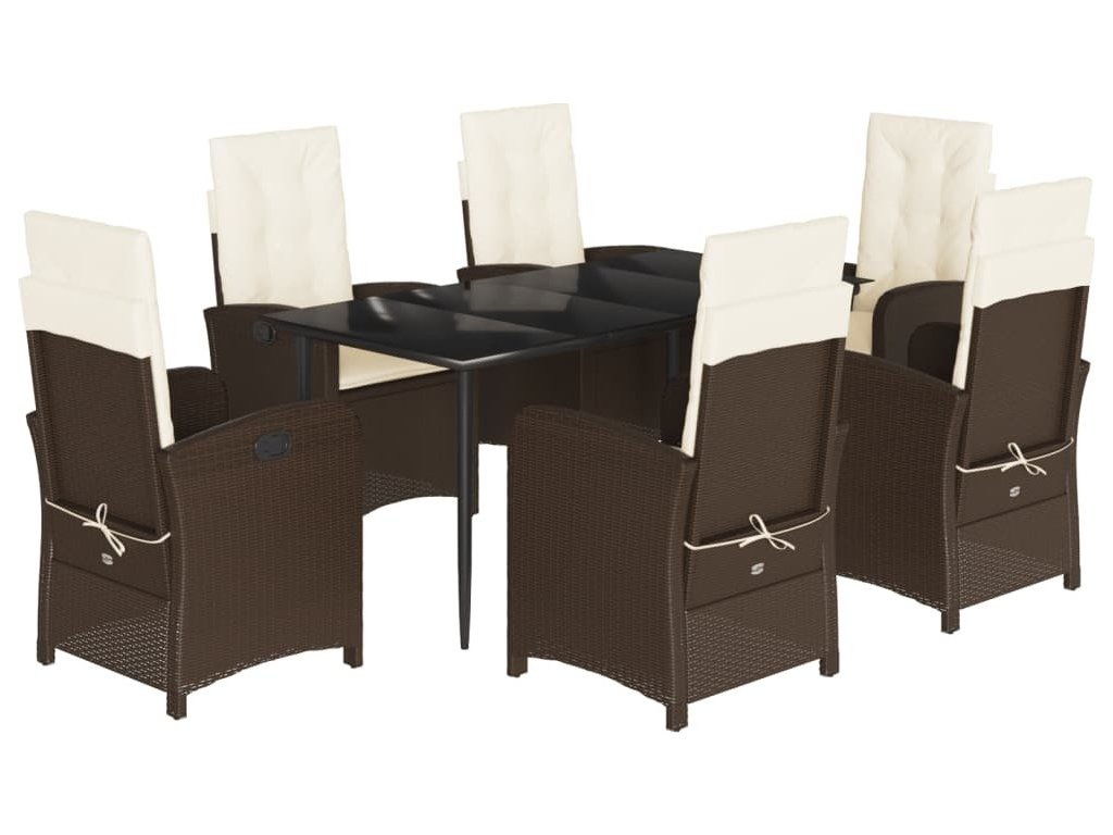 7dílný zahradní jídelní set s poduškami hnědý polyratan [3212336]