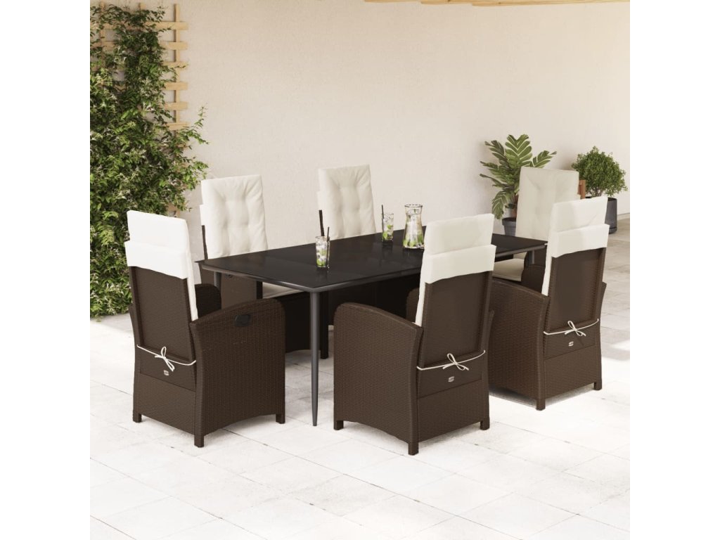 7dílný zahradní jídelní set s poduškami hnědý polyratan [3212337]