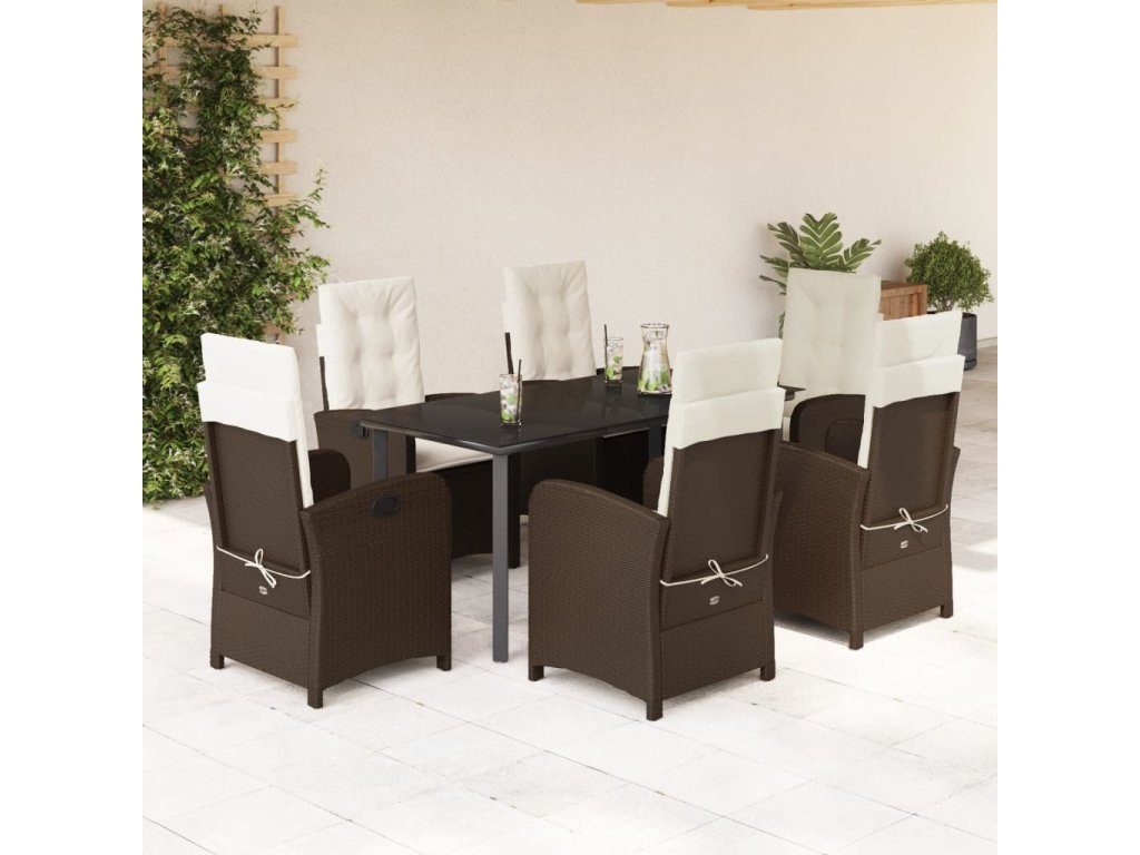 7dílný zahradní jídelní set s poduškami hnědý polyratan [3212346]