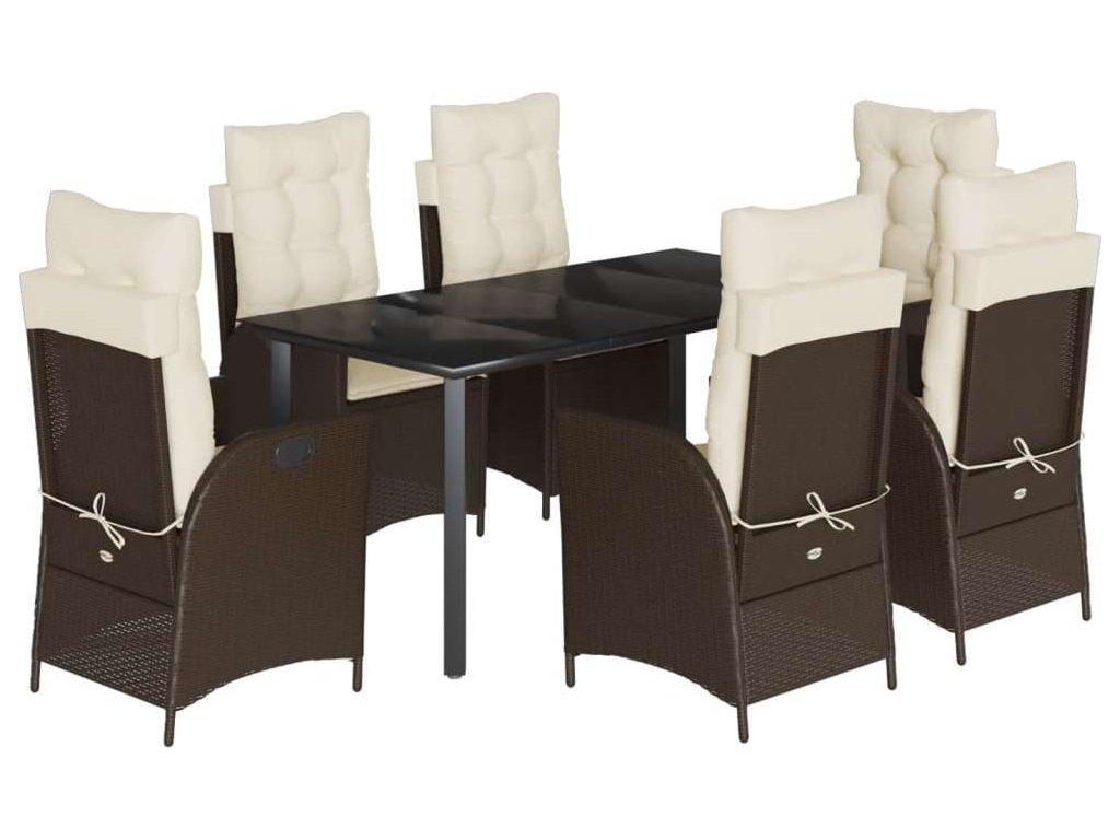 7dílný zahradní jídelní set s poduškami hnědý polyratan [3213209]