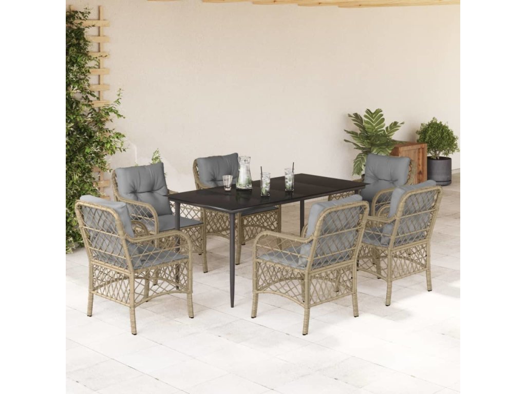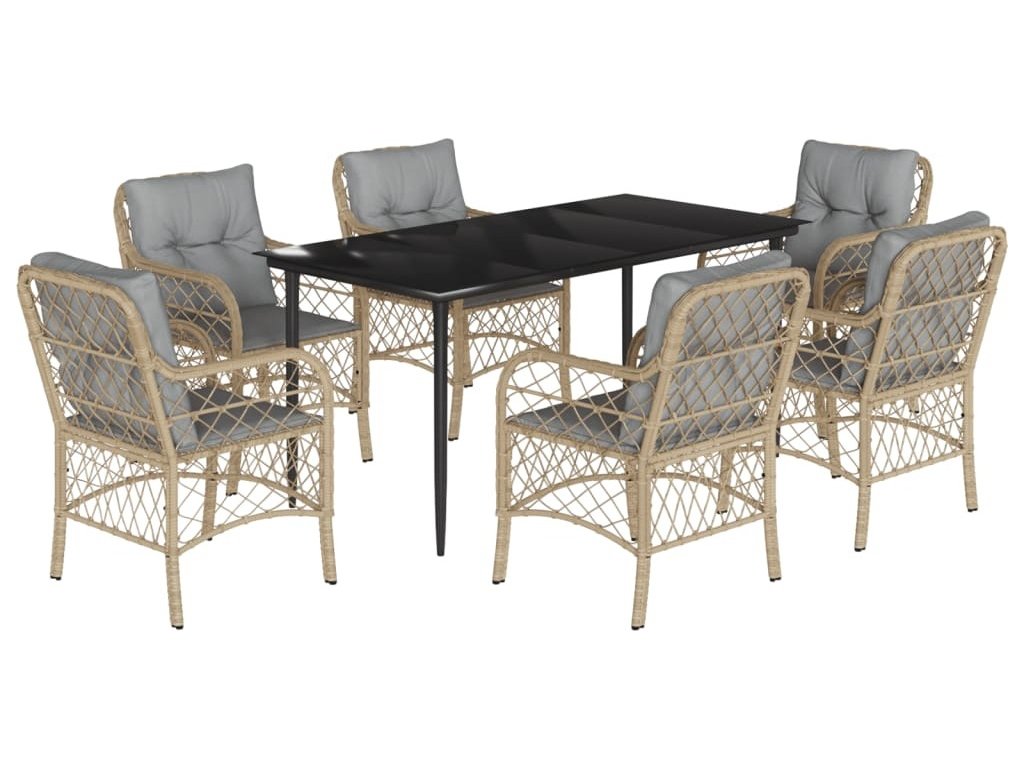 7dílný zahradní jídelní set s poduškami mix béžové polyratan [3212156]