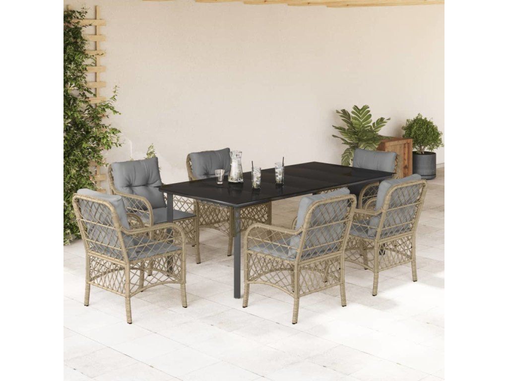 7dílný zahradní jídelní set s poduškami mix béžové polyratan [3212164]