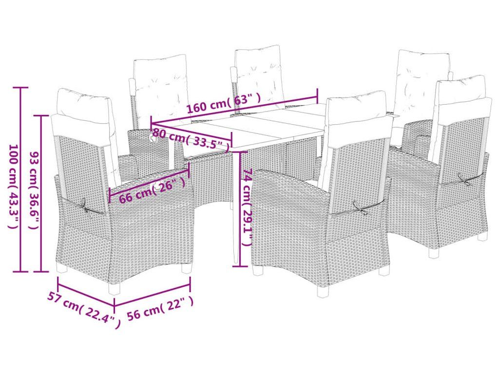 7dílný zahradní jídelní set s poduškami mix béžové polyratan [3212828]