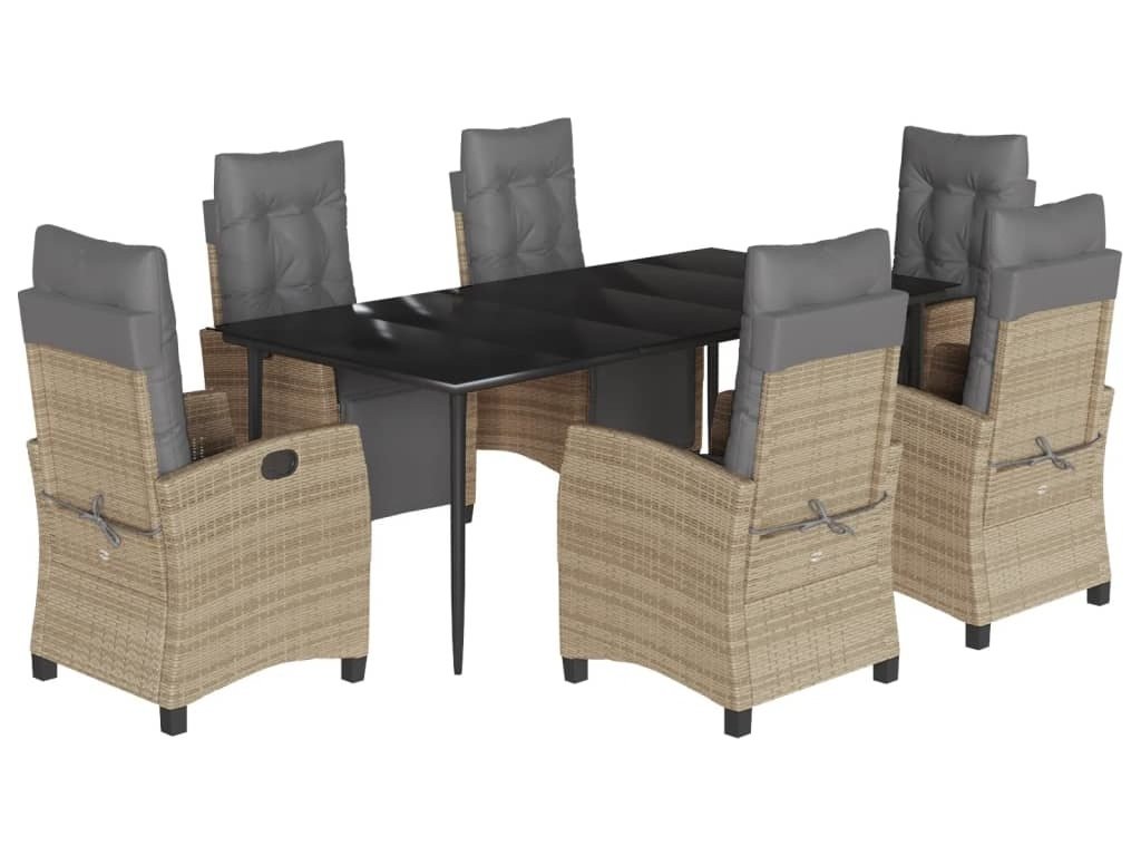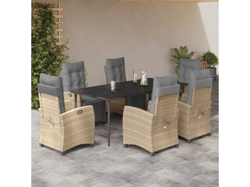 7dílný zahradní jídelní set s poduškami mix béžové polyratan [3213021]