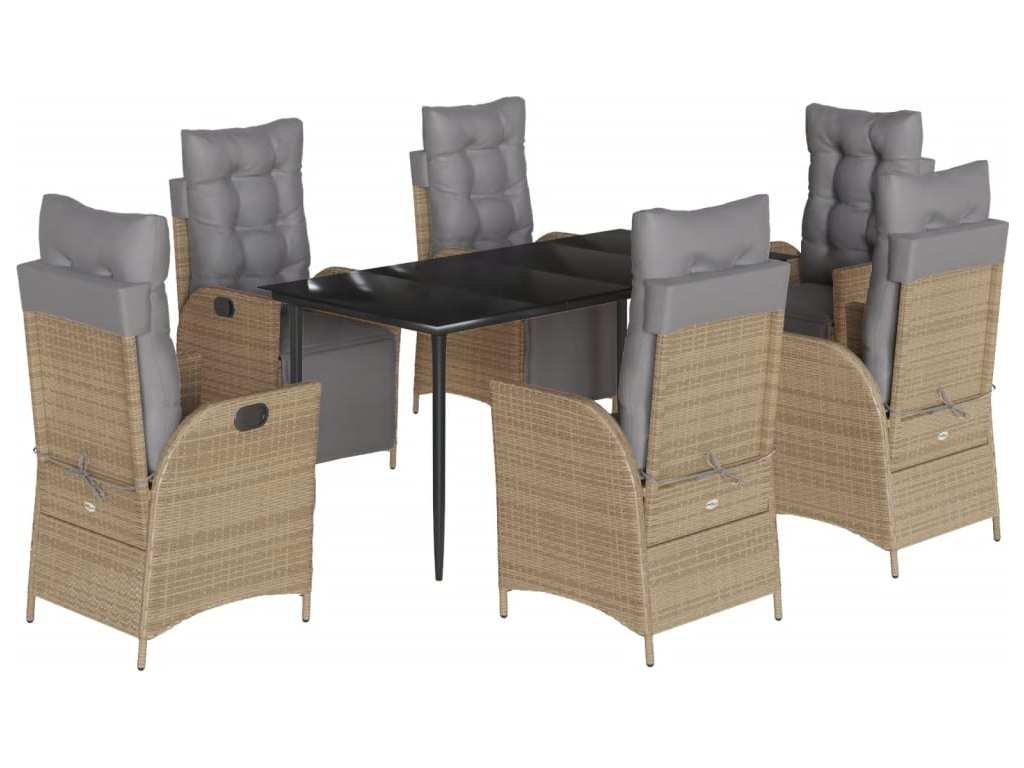 7dílný zahradní jídelní set s poduškami mix béžové polyratan [3213452]