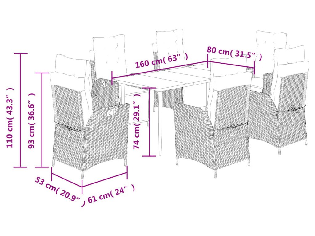 Tento zahradní jídelní set je skvělou volbou pro stolování pod širým nebem nebo jen tak pro odpočívání na zahradě, dvorku či terase.