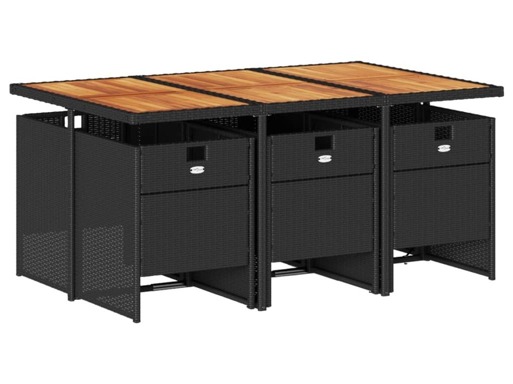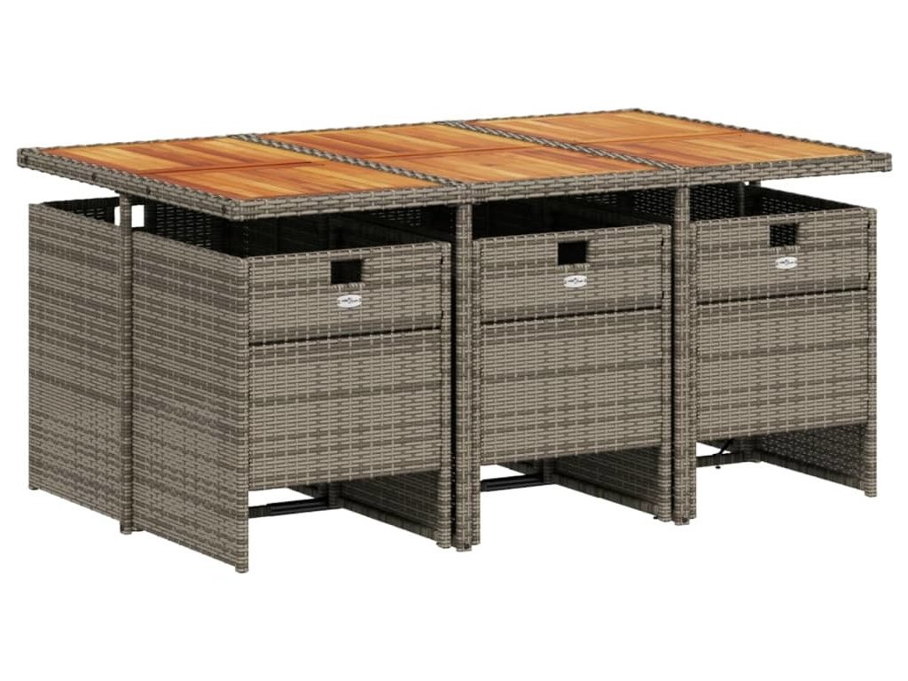 - Materiál: PE ratan, práškově lakovaná ocel, masivní akáciové dřevo s olejovou povrchovou úpravou