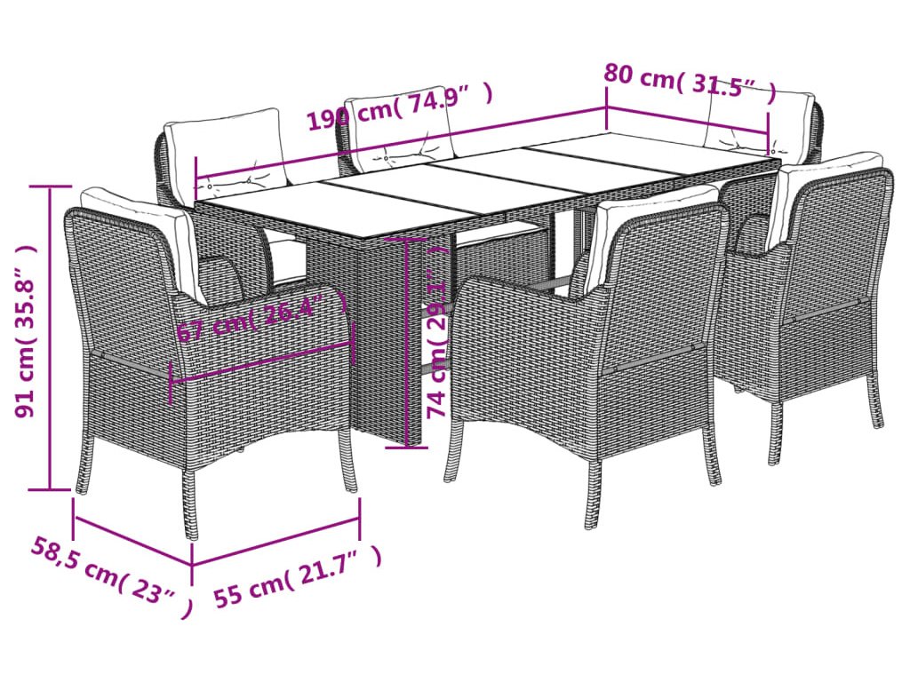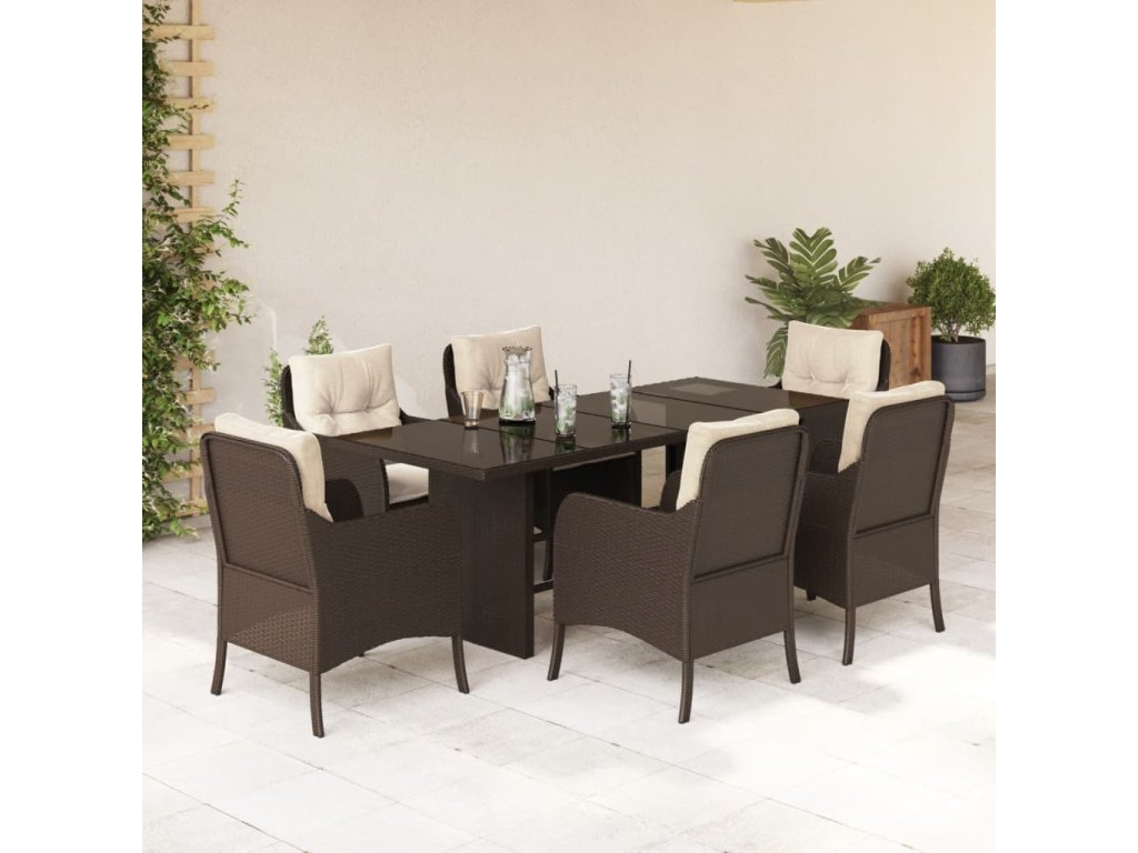 7dílný zahradní jídelní set s poduškami polyratan [3211878]