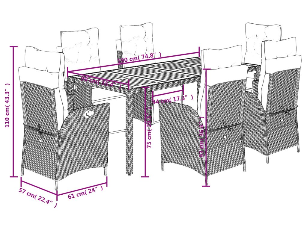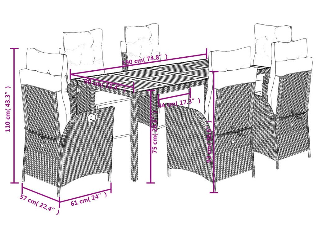 7dílný zahradní jídelní set s poduškami polyratan [3213109]
