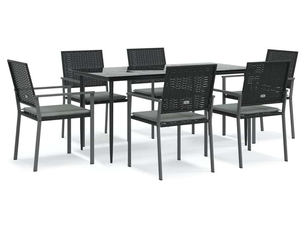 7dílný zahradní jídelní set s poduškami polyratan a ocel [3187010]