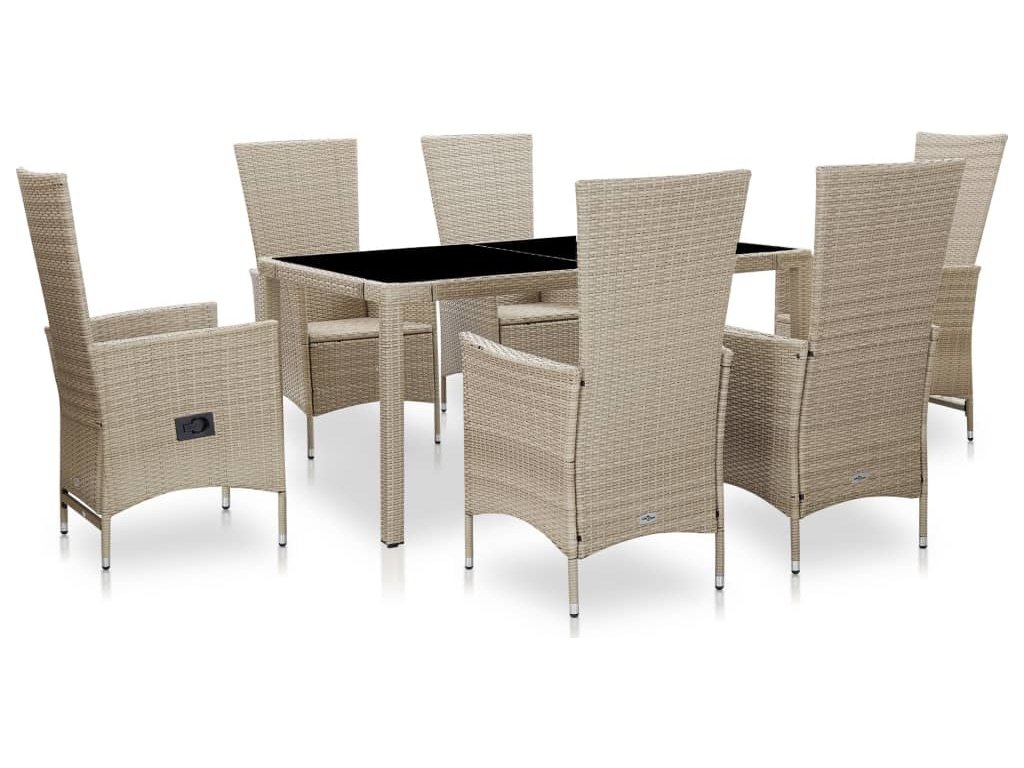 7dílný zahradní jídelní set s poduškami polyratan béžový [46040]