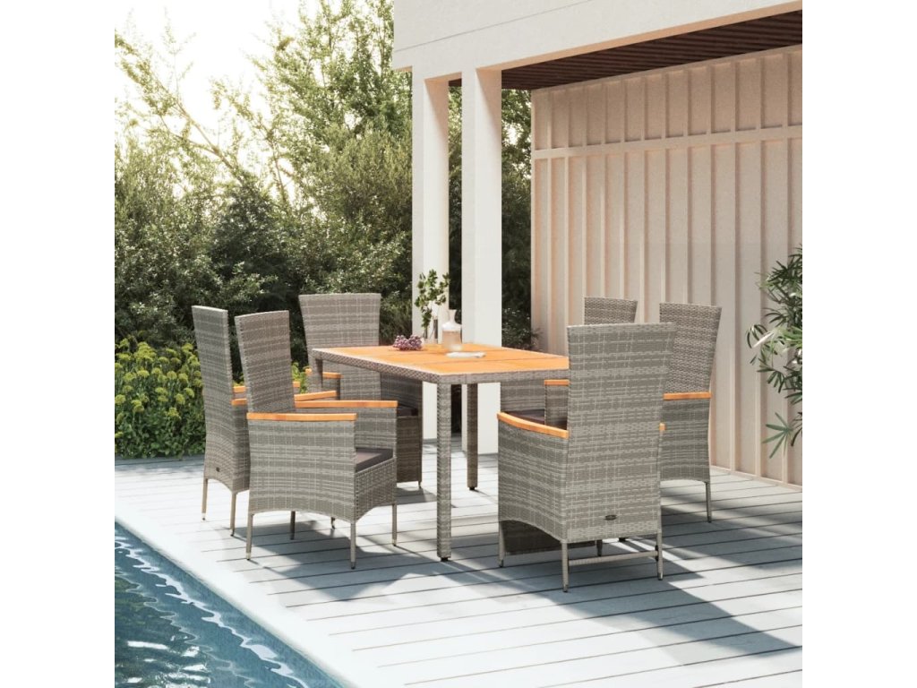 7dílný zahradní jídelní set s poduškami šedý polyratan [3157541]