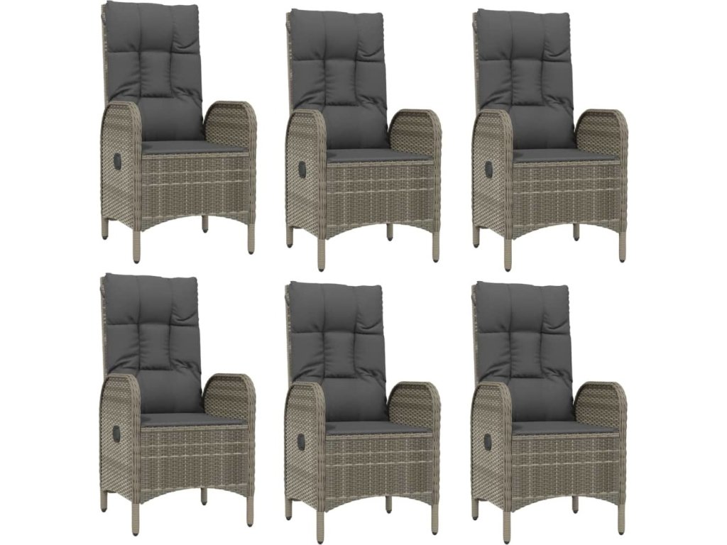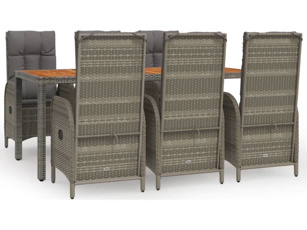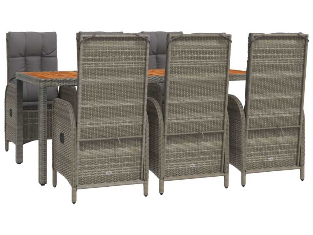 7dílný zahradní jídelní set s poduškami šedý polyratan [3185042]