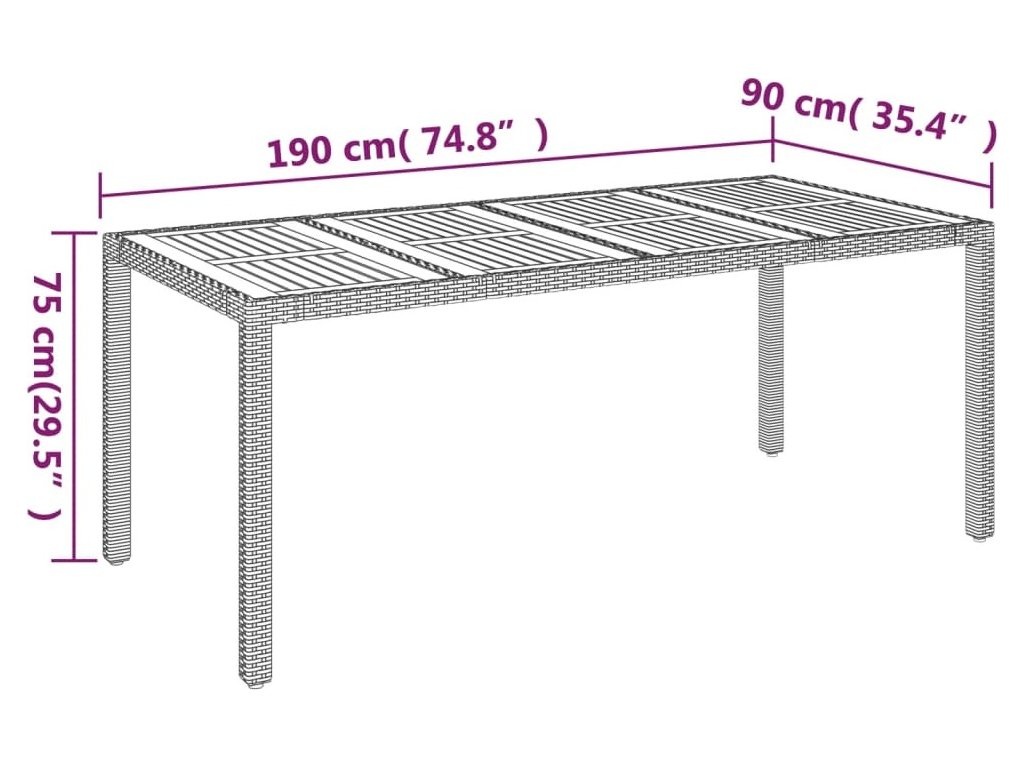- Materiál: PE ratan, práškově lakovaná ocel, masivní akáciové dřevo s olejovou povrchovou úpravou