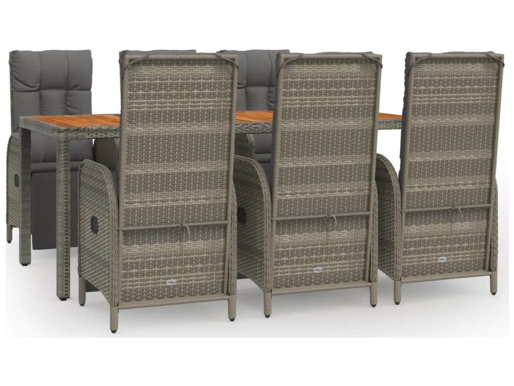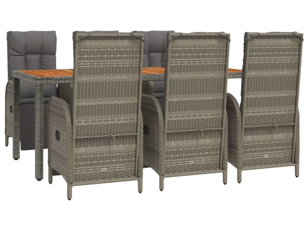 7dílný zahradní jídelní set s poduškami šedý polyratan [3185048]