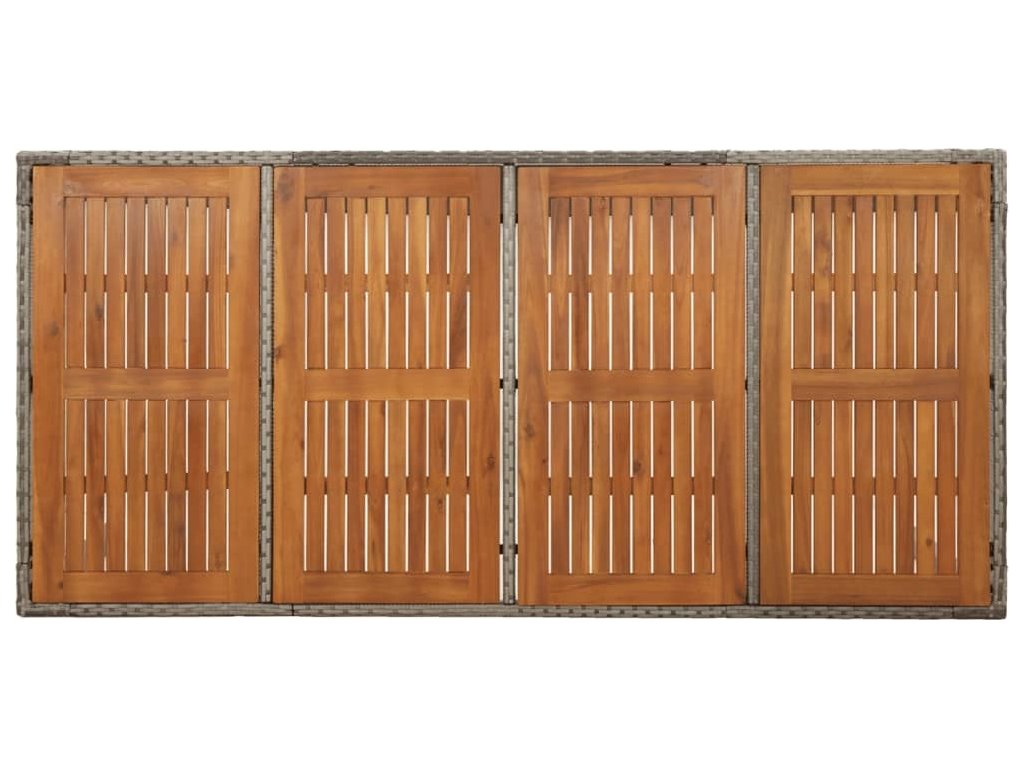 - Materiál: PE ratan, práškově lakovaná ocel, masivní akáciové dřevo s olejovou povrchovou úpravou