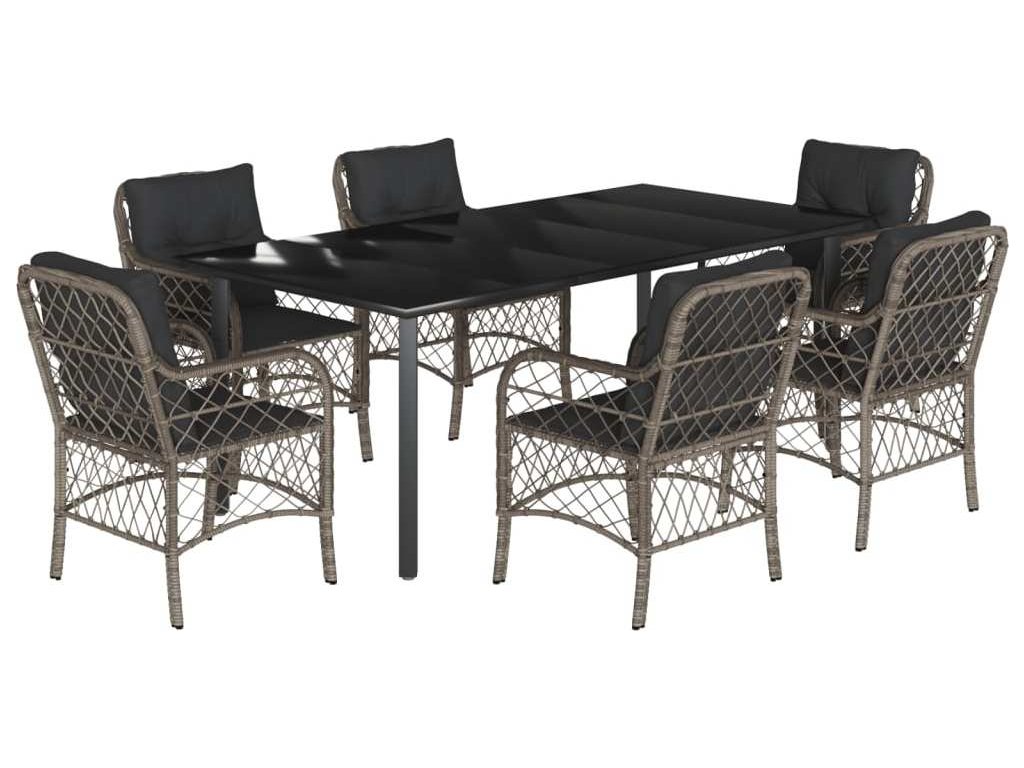 7dílný zahradní jídelní set s poduškami šedý polyratan [3212136]