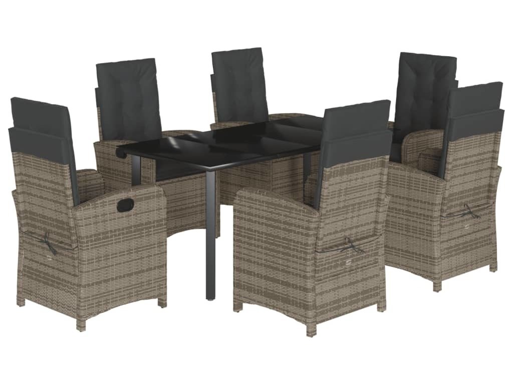 7dílný zahradní jídelní set s poduškami šedý polyratan [3212365]