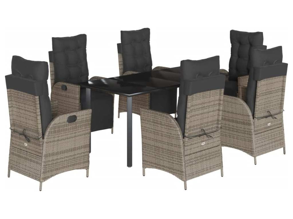7dílný zahradní jídelní set s poduškami šedý polyratan [3213431]