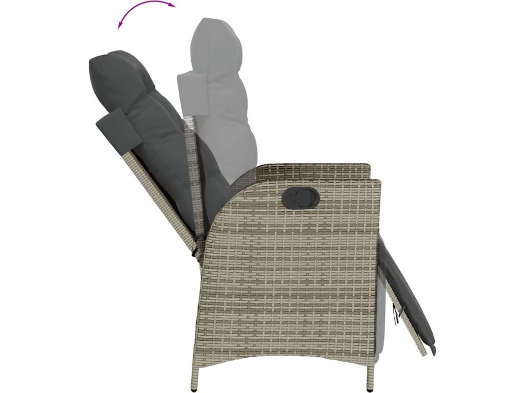 - Nastavitelné opěradlo a opěrka nohou: Tato zahradní židle je opatřena rukojetí. Zatáhnutím za ni můžete opěradlo a opěrku nohou nastavit do libovolné polohy. Stejně tak je můžete rychle vrátit do původní pozice.
