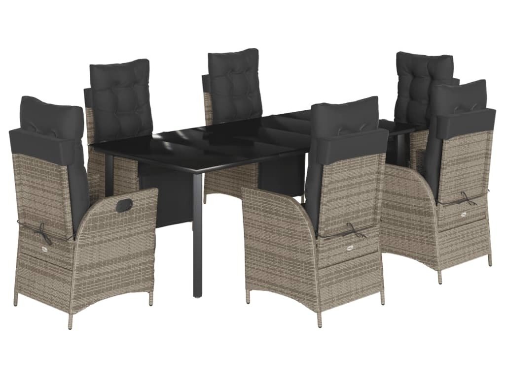 7dílný zahradní jídelní set s poduškami šedý polyratan [3213432]