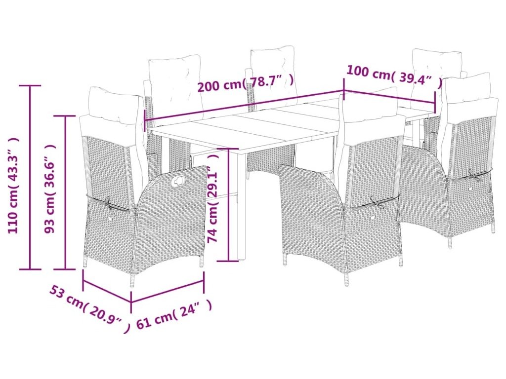 - Pohodlné sezení: Tento venkovní nábytek se silně polstrovanými poduškami a polštáři nabízí pohodlné sezení.