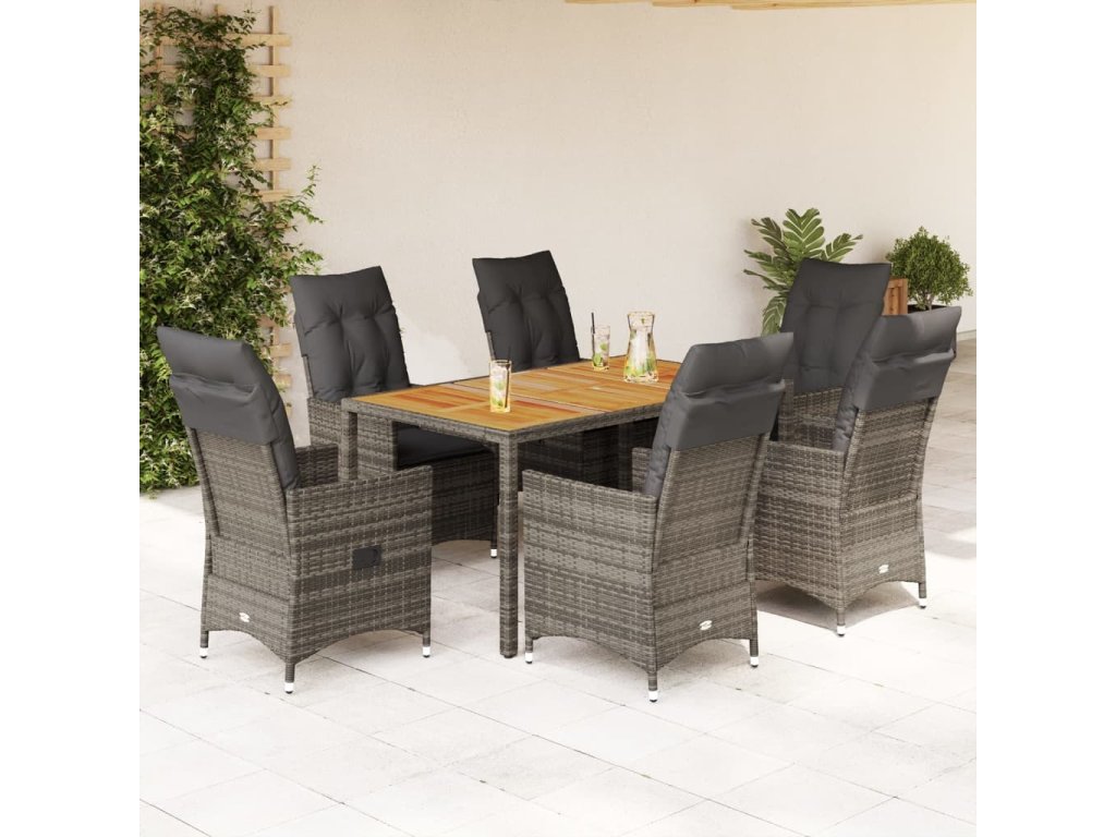7dílný zahradní jídelní set s poduškami šedý polyratan [3276727]