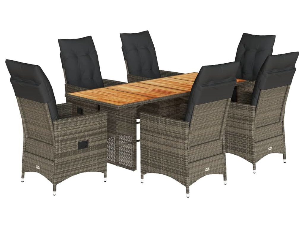 7dílný zahradní jídelní set s poduškami šedý polyratan [3276732]