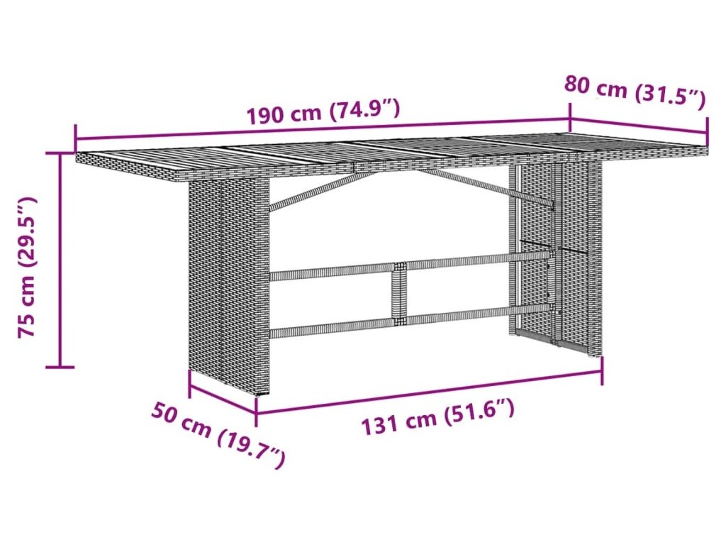 - Materiál: PE ratan, práškově lakovaná ocel, masivní akáciové dřevo s olejovou povrchovou úpravou