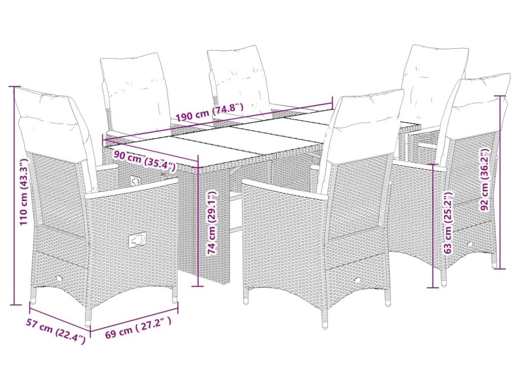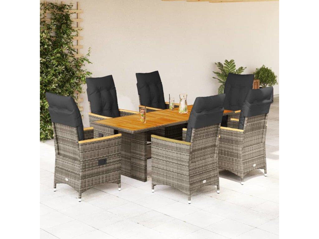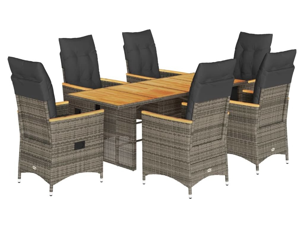 7dílný zahradní jídelní set s poduškami šedý polyratan [3276852]