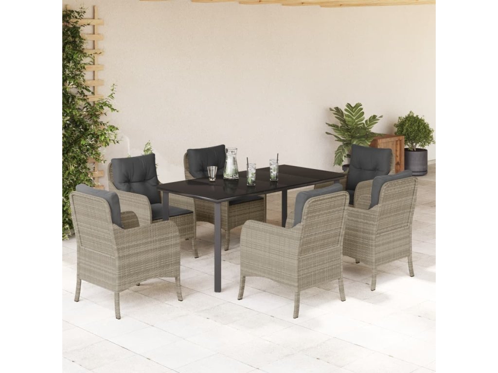 7dílný zahradní jídelní set s poduškami světle šedý polyratan [3212001]