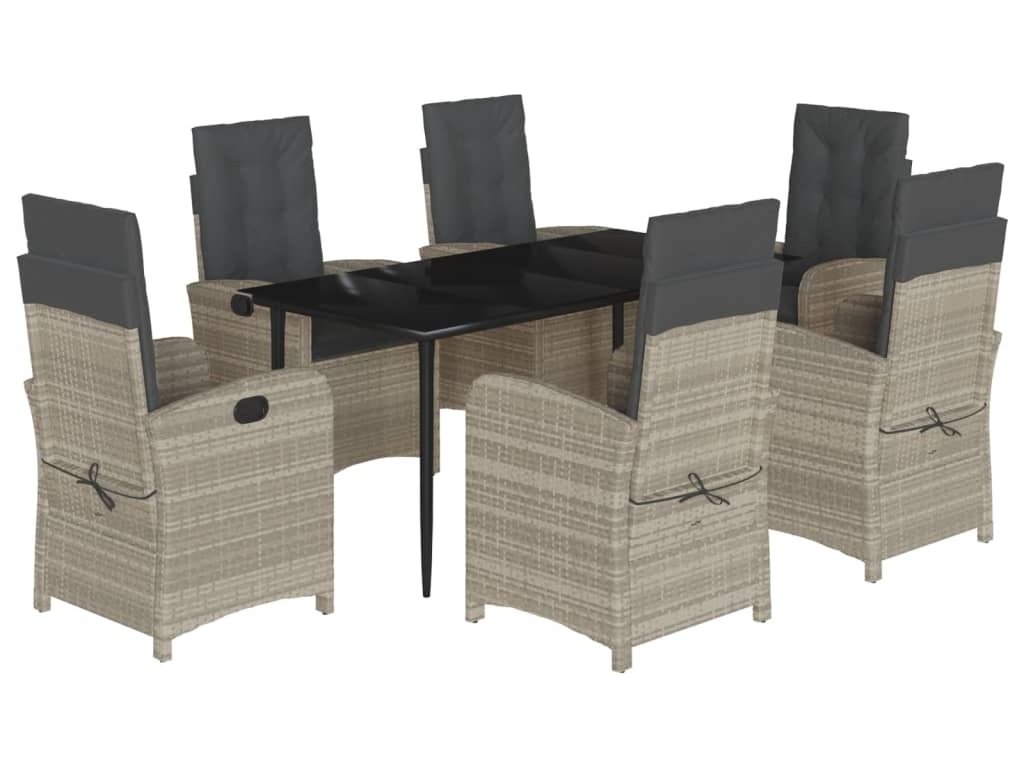 7dílný zahradní jídelní set s poduškami světle šedý polyratan [3212415]